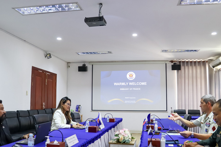 The ASEAN Regional Mine Action Center (ARMAC) held a constructive meeting today with Chef de bataillon Arnaud Brunat, Project Manager for Peacekeeping Operations and Adviser to the Director General of the National Peacekeeping and Mine Action Centre (NPMEC), from the French Defence Cooperation Mission in Cambodia.